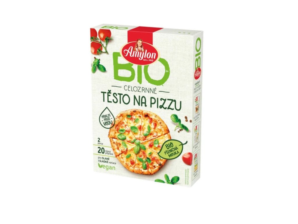 Směs pro rychlou přípravu těsta na pizzu v bio kvalitě. Příprava: Obsah sáčku vsypeme do misky, přidáme 150 ml studené vody a zpracujeme těsto. Těsto vložíme na vymazaný plech nebo použijeme pečící papír. Navlhčenýma rukama těsto vytvarujeme a potřeme rajským protlakem, posypeme strouhaným sýrem a ozdobíme dle chuti. Pečeme v předehřáté troubě 10-15 min.