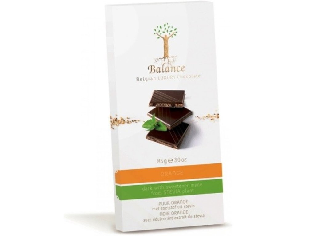 kakaová hmota, vláknina: inulin, kakaové máslo, sladidlo: maltitol, odtučněný kakaový prášek, pomeranč 5%, emulgátor: sójový lecitin*, sladidlo: glykosidy steviolu, přírodní aroma.