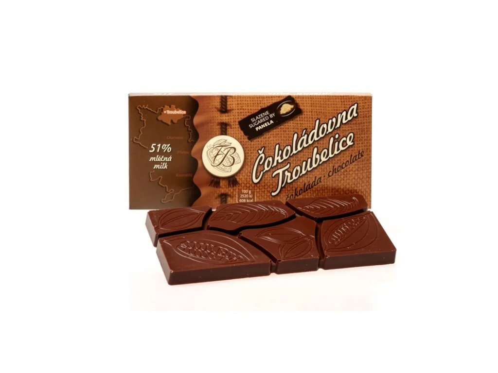 Kakaové boby, kakaové máslo, panela, sušené mléko. Obsah kakaové sušiny nejméně 51%.
