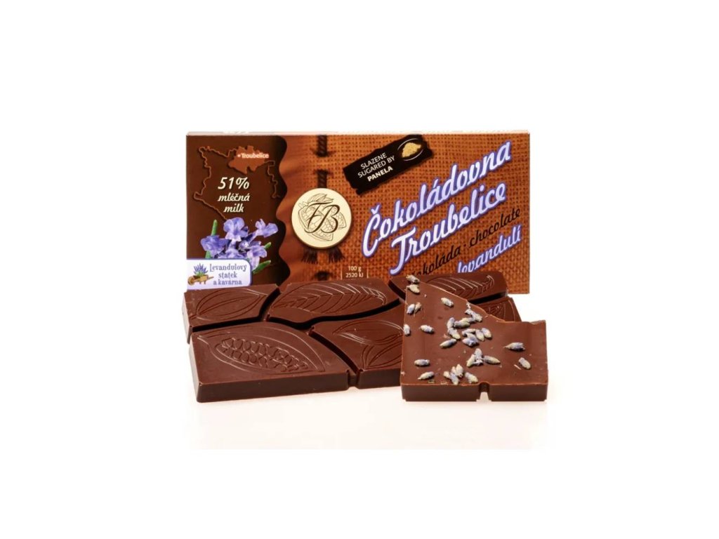 Čokoláda mléčná 51% s levandulí 45g ČOKOLÁDOVNA TROUBELICE