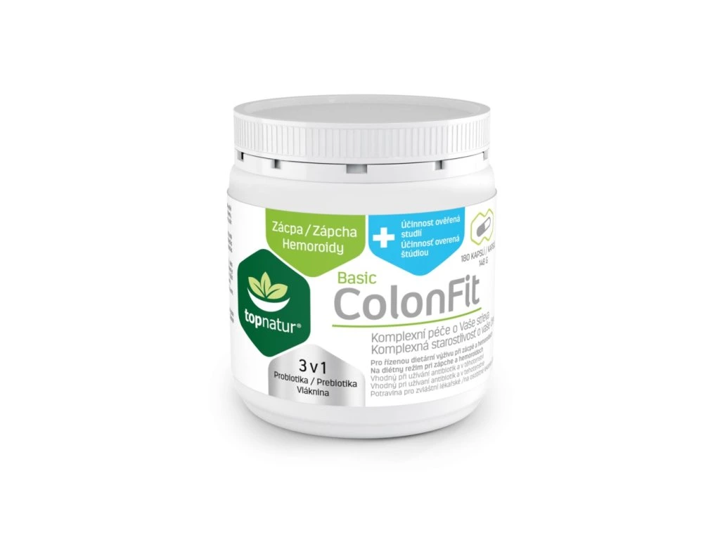 Jedná se o volně prodejnou potravinu pro zvláštní lékařské účely. V roce 2019 byla na ColonFit provedena Studie účinnosti na pacientech z České republiky. 92 % pacientů se zácpou produkt doporučuje! Je účinný při dlouhodobé zácpě, šetrně působí při problémech s hemoroidy, prostřednictvím ColonFitu rychle doplníte zásobu vlákniny a probiotik. Formule 3 v 1: Probiotika (živé kultury, přátelské bakterie) + Prebiotika (inulín, živiny pro probiotika) + Vláknina psyllium Vláknina Psyllium – rozemleté osemení jitrocele indického, které absorbuje ve vodě více než 40krát svou vlastní hmotnost, je ideálním zdrojem vlákniny a dieteticky pomáhá při poruchách motility střev, které jsou doprovodným příznakem zácpy