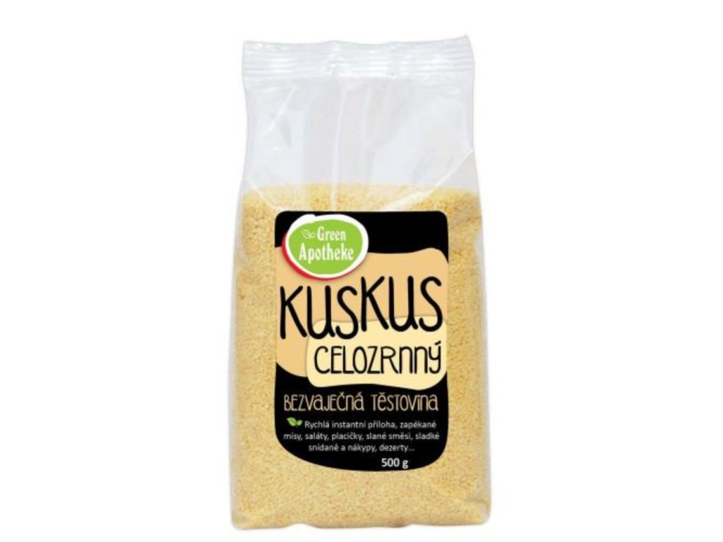 Kuskus je těstovina vyráběná z celozrnné tvrdozrnné pšenice zpracovaná do drobných kuliček. Celozrnná varianta kuskusu si zachovává řadu cenných látek, které se jinak při loupání zrn ztrácí. Lze jej používat jako přílohu, ale také různě míchat se zeleninou na způsob rizota.