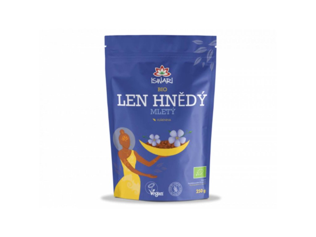 Len je jednou z nejstarších plodin naší civilizace. Je skvělým zdrojem nenasycených mastných kyselin omega-3 a také bílkovin. Mletá semínka poskytují tělu možnost plně využít všechny živiny, které u celého lnu z velké části jen projdou trávícím traktem. Len od Iswari je zpracován speciálním mlecím postupem, při němž nejsou vyloučeny tuky, a proto vydrží bez žluknutí řadu měsíců. Složení 100% bio len hnědý mletý Výživové hodnoty na 100 g Energetická hodnota [kJ/kcal] 2325/ 537 Tuky [g] 45 z toho nasycené mastné kyseliny [g] 4,2 Sacharidy [g] 1,0 z toho cukry [g] 0,8 Bílkoviny [g] 19 Sůl [g] 0,2 Skladování Skladujte v suchu a temnu. Země původu EU.