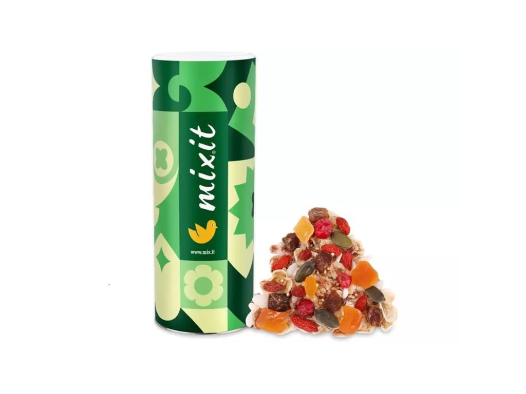 Zelený tubus ze série Müsli zdravě napoví, že zde hraje prim zelený čaj matcha. Detoxikační mix tvoří výživné pseudoobiloviny amarant a pohanka, křupání zaručí rýžové a ovesné vločky, náramnou chuť dodá šťavnatý červený rybíz, meruňky a žlutý meloun. Úžasnými zdroji zdravých tuků jsou chia semínka a dýňová jádra.