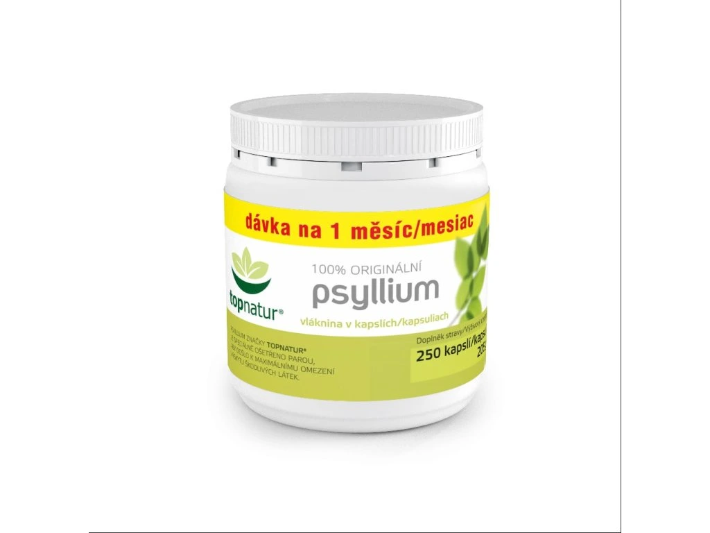 Psyllium - osemení jitrocele indického (Plantago ovata), ošetřeno parou, kapsle: želatina, voda