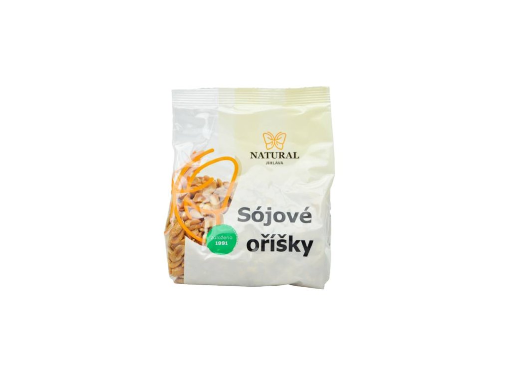 Tyto oříšky můžete použít přímo jako zdravé mlsání nebo svačinku. Lze je také přidávat do různých pokrmů, jako jsou saláty, rizoto, kuskus, polévky, kaše, ale i do těst na pečivo. Výroba sójových oříšků: Sójové boby se oloupou, vaří a následně buď suší nebo praží na oleji. Složení pražené SÓJOVÉ boby Výživové hodnoty na 100g Energetická hodnota 1555kJ/374kcal Tuky 20,00g z toho nasycené mastné kyseliny 3,90g Sacharidy 3,80g z toho cukry 3,80g Vláknina Bílkoviny 34,00g Sůl 0,02g Skladování Skladujte na suchém místě. Země původu ČR