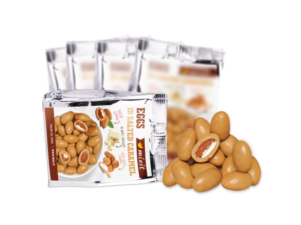 Sladká přání se špetkou soli byla vyslyšena! Mixit vajíčka se slaným karamelem naplnila nově celý tubus. Hra na Popelku se nekoná, je konec pracného hledání vaší oblíbené příchuti mezi ostatními vajíčky. :-) Těšte se jen na křupavé pražené mandličky v bílé čokoládě se slaným karamelem. I se zavřenými očima najdete to správné vajíčko – jako vždy bez palmového oleje.